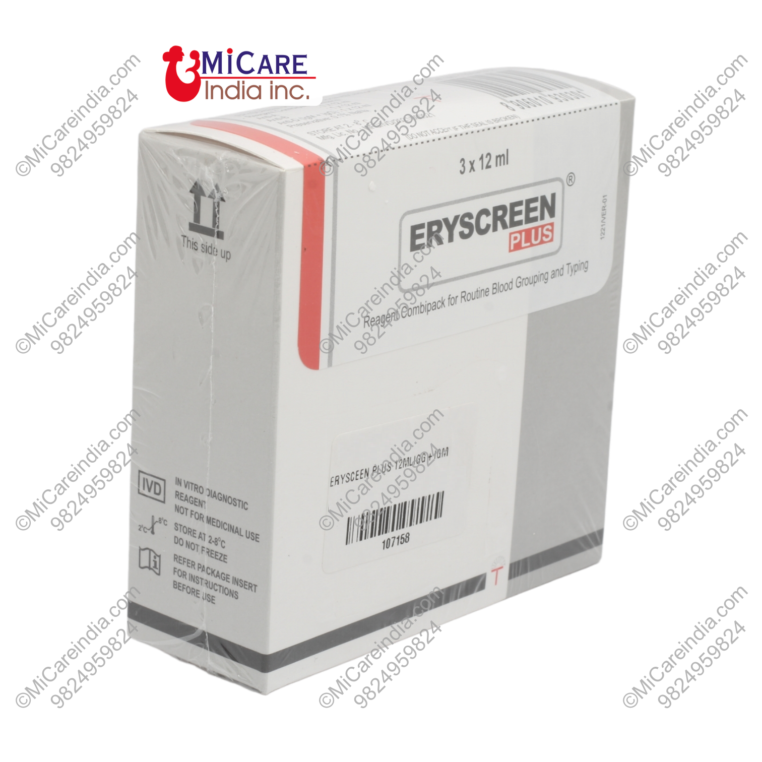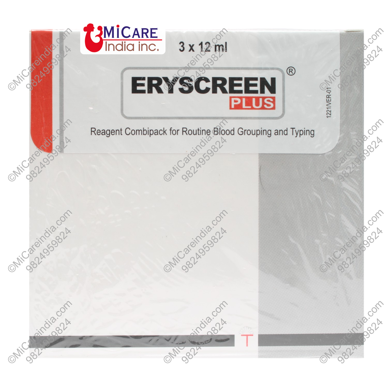 Eryscreen Plus, a reagent combipack for ABO grouping and Rho (D) (IgM+IgG) typing by slide or tube test.